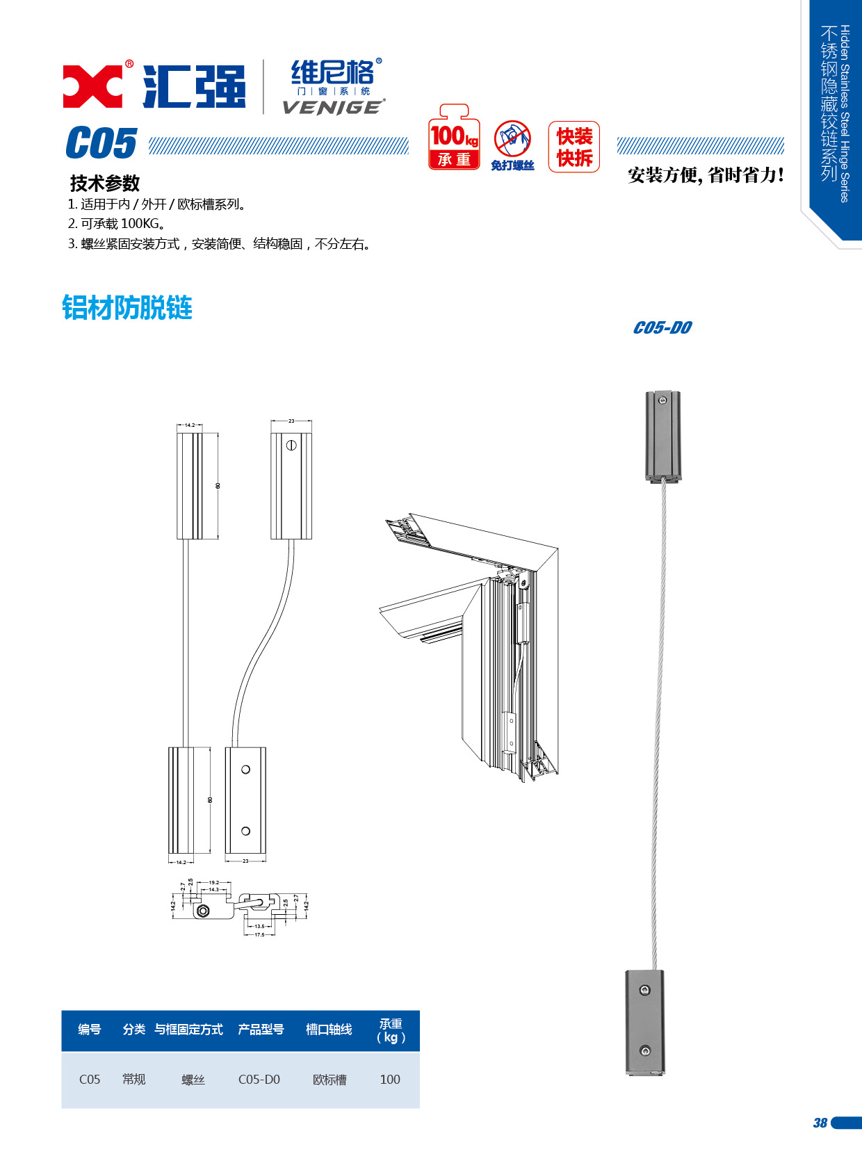 1.适用于内/外开/欧标槽系列。 2.可承载100KG。 3.螺丝紧固安装方式,安装简便、结构稳固,不分左右。