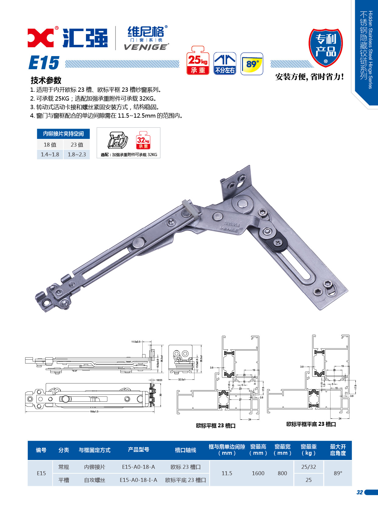 1.适用于内开欧标23槽、欧标平框23槽纱窗系列。 2.可承载25KG;选配加强承重附件可承载32KG。 3.转动式活动卡接和螺丝紧固安装方式,结构稳固。 4.窗门与窗框配合的单边间隙需在11.5~12.5mm的范围内。